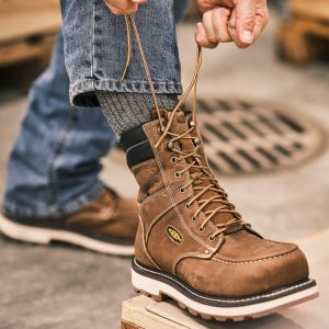 Lightweight comfort meets classic. heavy-duty welted style. This 8 waterproof work boot blends burly performance. all-day wearability. and grip of a 90° heel.